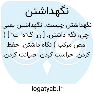 ( مصدر ) ۱ - حفظ کردن حفاظت کردن پاسبانی کردن: یا رب تو مر حسین ابوبکر را مدام از کل حادثات زمانه نگاه دار. ( لباب الالباب ) در جایی محفوظ داشتن: مردم آزاری... سنگی بر سر صالحی زد. درویش...سنگ را نگاه همی داشت تازمانی که ملک را بر آن لشکری خشم آمد... ۳ - مراقبت کردن توجه کردن: طلایه فرستاد هرسو براه همی داشت لشگر زدشمن نگاه. ۴ - تعمد کردن پرورش دادن. ۵ - باز داشتن منع کردن. ۶ - توقیف کردن.
