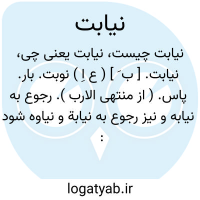 نیابت. [ ب َ ] ( ع اِ ) نوبت. بار. پاس. ( از منتهی الارب ). رجوع به نیابه و نیز رجوع به نیابة و نیاوه شود: