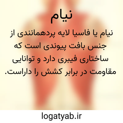 نیام ها گروهی از بافت های فیبر مانند هستند و توانایی مقاومت در برابر کشش را دارا می باشند. نیام ها در اغلب مناطق بدن دیده می شوند زیر پوست، اطراف ماهیچه ها و اندام ها، پیرامون رگ ها و…. نیام از فرق سر تا نوک پا را می پوشاند.