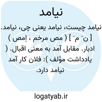 نیامد. [ ن َ م َ ] ( مص مرخم، اِمص ) ادبار. مقابل آمد به معنی اقبال. ( یادداشت مؤلف ): فلان کار آمد نیامد دارد. این علامت نیامد کار است. سرکه انداختن آمد نیامد دارد. ( یادداشت مؤلف ).