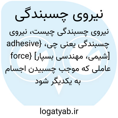 {adhesive force} [شیمی، مهندسی بسپار] عاملی که موجب چسبیدن اجسام به یکدیگر شود