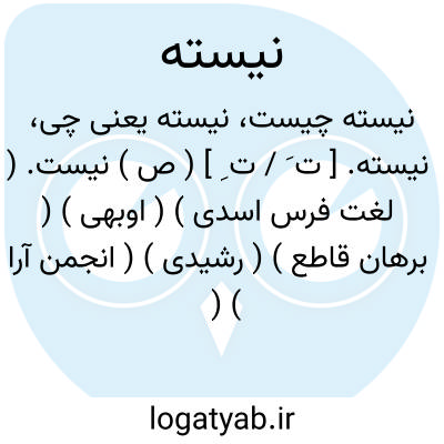 نیسته. [ ت َ / ت ِ ] ( ص ) نیست. ( لغت فرس اسدی ) ( اوبهی ) ( برهان قاطع ) ( رشیدی ) ( انجمن آرا ) ( آنندراج ). معدوم. ناچیز. ( آنندراج ). نابود. ( یادداشت مؤلف ). رجوع به نیست شود: