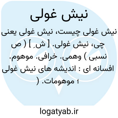 نیش غولی. [ ش ِ ] ( ص نسبی ) وهمی. خرافی. موهوم. افسانه ای: اندیشه های نیش غولی؛ موهومات. ( یادداشت مؤلف ). || ایراد نیش غولی؛ ایراد نامربوط. اعتراض بیهوده. ( فرهنگ فارسی معین ). ایرادی نابه جا و ناوارد که صرفاً به قصد لجبازی و عیب جوئی طرح کنند.