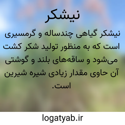 (نَ شَ یا نِ ش کَ ) [ په. ] (اِمر. ) نوعی از نی با ساقه های بلند که برگ های دراز و گل های سرخ کم رنگ دارد. در داخل آن شیره ای وجود دارد که از آن شکر به دست می آورند.
