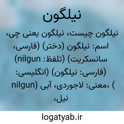 اسم: نیلگون (دختر) (فارسی، سانسکریت) (تلفظ: nilgun) (فارسی: نيلگون) (انگلیسی: nilgun)