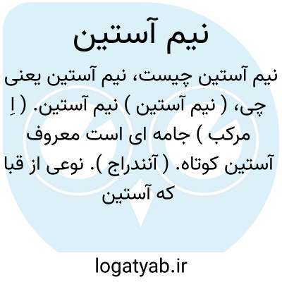 ( نیم آستین ) نیم آستین. ( اِ مرکب ) جامه ای است معروف آستین کوتاه. ( آنندراج ). نوعی از قبا که آستین های آن تا آرنج می باشد و از پارچه های زری می سازندو روی لباسهای دیگر آن را می پوشند. ( ناظم الاطباء ).