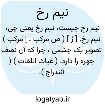 نیم رخ. [ رُ ] ( ص مرکب، اِ مرکب ) تصویر یک چشمی، چرا که آن نصف چهره را دارد. ( غیاث اللغات ) ( آنندراج ). کنایه از نیم رخساره باشد که مصوران تصویر یک چشمی به نگار درمی آرند. ( فرهنگ خطی ).تصویر یا عکس که از پهلو نقاشی یا عکاسی شده باشد وفقط نیمی از صورت شخص را نشان دهد، مقابل تمام رخ. عکسی که یکی از دو طرف روی را بنماید. || نصف صورت. کنار صورت. ( ناظم الاطباء ). || منظره هر چیز از یکی از جانبین. ( فرهنگ فارسی معین ).