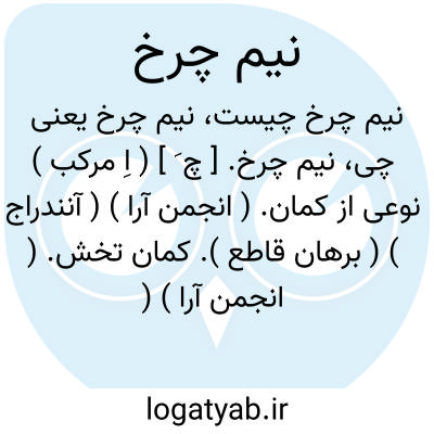 نیم چرخ. [ چ َ ] ( اِ مرکب ) نوعی از کمان. ( انجمن آرا ) ( آنندراج ) ( برهان قاطع ). کمان تخش. ( انجمن آرا ) ( برهان قاطع ) ( رشیدی ) ( جهانگیری ): وزن کمان بلندترین ششصد من نهاده اند و مر آن را کشکنجیر خوانده اند و آن مر قلعه ها را بوده فروترین یک من بود و مرآن را بهر کودکان خرد سازند و هرچه از چارصد من تا دویست وپنجاه من چرخ بود، هرچه از دویست وپنجاه من فرودآید تا به صد من نیم چرخ بود و هرچه از صد من فرود آید تا به شصت من آن کمان بلند بود. ( نوروزنامه ). نیزرجوع به تخش و چرخ در این لغت نامه شود: