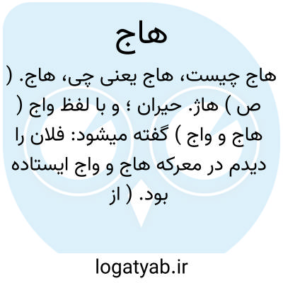 هاج. ( ص ) هاژ. حیران؛ و با لفظ واج ( هاج و واج ) گفته میشود: فلان را دیدم در معرکه هاج و واج ایستاده بود. ( از فرهنگ نظام ). || مات. دنگ. منگ. کودن. رجوع به هاج و واج، هاژ، هاژو، هاژ و واژ و هاژه شود.