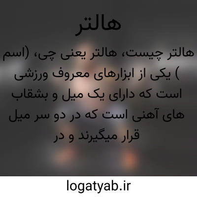 (اسم ) یکی از ابزارهای معروف ورزشی است که دارای یک میل و بشقاب های آهنی است که در دو سر میل قرار میگیرند و در اثر کم وزیادکردن بشقابها وزن آن تغییرمیکند ورزش قهرماین هالتر برای بدست آوردن رکورهای زورمندی امروزه متداول و بین المللی میباشد.