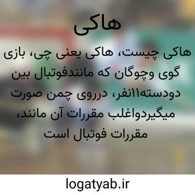 [ انگ. ] (اِ. ) بازی تیمی شبیه فوتبال که در آن توپ به وسیلة چوب مخصوصی زده می شود و آن بر دو نوع است. روی یخ و روی چمن.