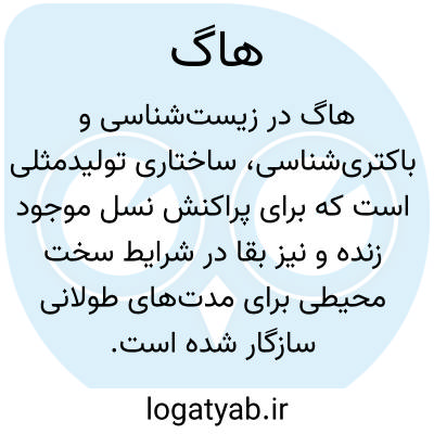 هاگ. ( اِ ) ( اصطلاح طبیعی ) از ساخته های فرهنگستان ایران معادل اسپر و بمعنای آلت تناسل نباتات ذات الالقاح الخفیه که فرانسویها این طبقه نباتات را "aryptogame" میگویند. ( فرهنگ غفاری ). || شکل خفته و مقاوم باکتری است که بر اثر ایجاد آن میکرب میتواند در شرایط نامساعد، حیات خود را حفظ کند. توضیح آنکه بعضی از باکتریها در شرایط نامساعد، بواسطه تولید هاگ، در برابر وقایع ناگوار مقاومت بیشتری میکنند، چنانکه هاگهای برخی از میکربها قادرند سالهای متمادی در روی یک قطعه چوب باقی مانده و نسبت به شرایط سخت و حتی مواد گندزدا مقاومت کنند. هاگ پاره ای از میکربها مدت یک ساعت حرارت آب جوش و یا 160 درجه حرارت خشک کوره را تحمل مینماید. هاگ باکتری دارای فعالیت حیاتی بسیار ناچیزی است، زیرا کلیه اعمال حیاتی مستلزم مقدار کافی آب و رطوبت است که هاگ فاقد آن میباشد. وقتی هاگ در محل مناسب و مرطوبی قرار گیرد سیتوپلاسم که بوسیله غلافی احاطه شده در نتیجه جذب آب متورم میشود و غشاء اطراف را ترکانیده بشکل رشته ای میکرب از آن خارج میشود. باید دانست که اکثر باکتریها فاقد خاصیت تولید هاگ هستند و در بین آنها فقط دو خانواده باسیلوس و کلوستریدیم میتوانند در مواقع لزوم هاگ دار شوند. طرزایجاد هاگ این است که ابتدا دانه کوچک و شفافی در داخل پیکر باکتری ظاهر میگردد که بتدریج بزرگ میشود.از مکانیسم تشکیل هاگ و اعمال شیمیائی که در داخل باکتری در هنگام تولید آن صورت میگیرد اطلاع کاملی در دست نیست. برخی آن را در نتیجه شکل هسته میدانند و هاگ را از جنس دانه های هسته می پندارند، عده ای معتقدند که تولید هاگ همواره با الحاق دو باکتری با یکدیگرو مخلوط شدن هسته آنها توام میباشد. آنچه مسلم است اینکه هاگ پس از مدتی بشکل توده متراکمی تمام پیکرباکتری را فراگرفته بوسیله پوشش ضخیمی احاطه میشود. بطور کلی هاگ های میکربی فاقد آب به حالت آزاد میباشند و عده ای تصور میکنند که در هنگام تبدیل باکتری به هاگ مولکولهای آب محتوی در آن با سایر مواد شیمیایی و پروتئین ها ترکیب می گردد. در ترکیب شیمیایی هاگهااملاح کلسیم بیشتر از فرمهای رشته ای میکرب وجود داردو همین فقدان آب و ازدیاد کلسیم موجب ازدیاد مقاومت باکتری در برابر حرارت میباشد. پس از تشکیل کامل هاگ دیواره خالی باکتری مانند پوسته خارجی دانه حبوبات جدا و هاگ کروی یا بیضی شکل آزاد میگردد. ( از میکرب شناسی و زینهاری شناسی عمومی چ دانشگاه صص 42-46 ).