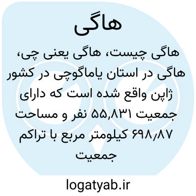 هاگی در استان یاماگوچی در کشور ژاپن واقع شده است که دارای جمعیت ۵۵٬۸۳۱ نفر و مساحت ۶۹۸٫۸۷ کیلومتر مربع با تراکم جمعیت ۷۹٫۹ نفر در کیلومترمربع است و در تاریخ ۰۲۰۰۵−۰۳−۰۶ ۶ مارس ۲۰۰۵ به عنوان شهر شناخته شد.