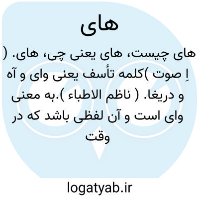 های. ( اِ صوت )کلمه تأسف یعنی وای و آه و دریغا. ( ناظم الاطباء ).به معنی وای است و آن لفظی باشد که در وقت دردی و مصیبتی و المی و آزاری بر زبان رانند. ( برهان ). نشانه ٔضجرت از درد. مترادف آی و وای. || در تداول عامه، حرف ندا و خطاب، چون آی و ای:
