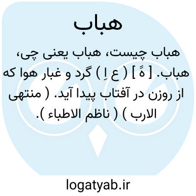 هباب. [ هََ ] ( ع اِ ) گرد و غبار هوا که از روزن در آفتاب پیدا آید. ( منتهی الارب ) ( ناظم الاطباء ). هباء. ( اقرب الموارد ) ( تاج العروس ) ( معجم متن اللغة ).