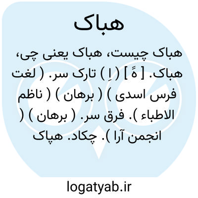 هباک. [ هََ ] ( اِ ) تارک سر. ( لغت فرس اسدی ) ( برهان ) ( ناظم الاطباء ). فرق سر. ( برهان ) ( انجمن آرا ). چکاد. هپاک: