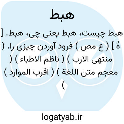هبط. [ هََ ] ( ع مص ) فرود آوردن چیزی را. ( منتهی الارب ) ( ناظم الاطباء ) ( معجم متن اللغة ) ( اقرب الموارد ) ( تاج العروس ). اللهم غبطا و لاهبطا؛ یعنی میخواهیم از تو غبطه و پناه میبریم از فرود آوردن ما. ( ازمنتهی الارب ) ( از اقرب الموارد ). || لاغر گردانیدن بیماری کسی را. ( منتهی الارب ) ( ناظم الاطباء ) ( معجم متن اللغة ) ( اقرب الموارد ). لاغر کردن. ( اقرب الموارد ) ( معجم متن اللغة ) ( تاج العروس ). || زدن. ( منتهی الارب ) ( ناظم الاطباء ) ( اقرب الموارد ) ( معجم متن اللغة ) ( تاج العروس ). || درآوردن در شهری. ( منتهی الارب ). داخل کردن کسی را در شهر. داخل کردن به شهر. ( ناظم الاطباء ) ( اقرب الموارد ) ( معجم متن اللغة ) ( تاج العروس ). || کم کردن بهای متاع. ( منتهی الارب ) ( اقرب الموارد ) ( تاج العروس ). || کم کردن و ناقص کردن. هبطه اﷲ؛ کم کرد او را خدای. ( ناظم الاطباء ) ( معجم متن اللغة ). و این معنی مجاز است. ( تاج العروس ): هبطه الزمان؛ برد روزگار مال و نعمتش را. ( معجم متن اللغة ) ( اقرب الموارد ). بی چیز کردن. فقیر گردانیدن. || هبطالسوق؛ به بازار آمد. ( اقرب الموارد ). || فرود آمدن از منزلت. سقوط کردن. ( معجم متن اللغة ). || درآمدن به شهری. ( منتهی الارب ) ( ناظم الاطباء ). داخل شدن به شهری. ( معجم متن اللغة ) ( اقرب الموارد ). || منتقل شدن از محلی به محل دیگر. انتقال. ( ناظم الاطباء ) ( معجم متن اللغة ). || کم شدن بهای متاع. ( منتهی الارب ) ( اقرب الموارد ). || کم شدن. ( منتهی الارب ). || به بدی درافتادن. ( منتهی الارب ) ( ناظم الاطباء ). واقع شدن در بدی. ( معجم متن اللغة ) ( اقرب الموارد ). || ( اِمص ) نقصان. ( معجم متن اللغة ) ( اقرب الموارد ). کمی. کمبود. || خواری. ذل. ( اقرب الموارد ). رجوع به حبط و هبت شود.