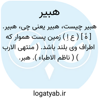 هبیر. [ هََ ] ( ع اِ ) زمین پست هموار که اطراف وی بلند باشد. ( منتهی الارب ) ( ناظم الاطباء ). هبر. زمین هموار که اطراف آن برآمده باشد. ( معجم متن اللغة ) ( اقرب الموارد ) ( لسان العرب ). || زمین پست هموار. ( اقرب الموارد ) ( معجم متن اللغة ). ج، هُبر، اَهبِرَة. ( معجم متن اللغة ) ( لسان العرب ). || ریگ پست و هموار. ( منتهی الارب ) ( ناظم الاطباء ) ( معجم متن اللغة ) ( لسان العرب ). زمیل بن ام دینار گوید: