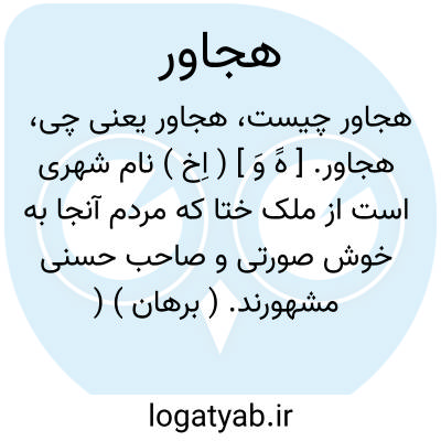 هجاور. [ هََ وَ ] ( اِخ ) نام شهری است از ملک ختا که مردم آنجا به خوش صورتی و صاحب حسنی مشهورند. ( برهان ) ( جهانگیری ). شهری است به ختا و منسوب به خوبرویان. ( آنندراج ) ( انجمن آرا ). نام شهری که مردم آنجا به خوب صورتی مشهورند. ( ناظم الاطباء ).