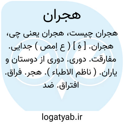 هجران. [ هَِ ] ( ع اِمص ) جدایی. مفارقت. دوری. دوری از دوستان و یاران. ( ناظم الاطباء ). هجر. فراق. افتراق. ضد وصال. فرقت:
