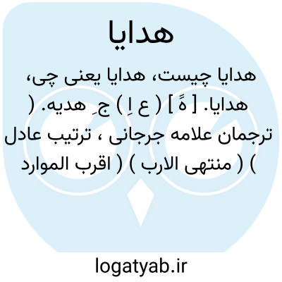 هدایا. [ هََ ] ( ع اِ ) ج ِ هدیه. ( ترجمان علامه جرجانی، ترتیب عادل ) ( منتهی الارب ) ( اقرب الموارد ). پیش کشیها: مهدراست کردند با خدمتکاران و هدایا. ( تاریخ بیهقی ).