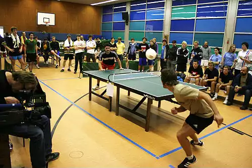 قوانین این ورزش شبیه تنیس روی میزاست اما چندین استثناء هم وجود دارد. قطر توپی که از آن استفاده می شود ۷ اینچ است، وزن آن ۱۰۰ گرم و از جنس لاستیک است. در این بازی برخورد هر قسمت از بدن با میز مجاز است و بازیکنان می توانند از ضربه های والی ( ضربه ای که در آن یک بازیکن می تواند قبل از خوابیدن توپ در زمین خود به آن ضربه بزند و آن را به زمین حریف برگرداند ) استفاده کنند. برای برنده شدن در این بازی هر شخص باید دو ست را از حریف خود بگیرد. هر ست تا امتیاز ۱۱ بازی می شود و بازیکن باید دو امتیاز از حریف خود جلو باشد تا در آن ست برنده شود.