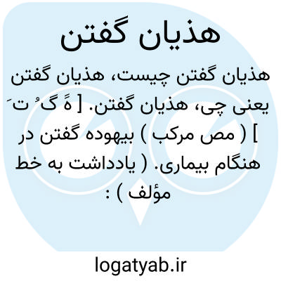 (مصدر ) بیهودهگفتن درهنگام بیماری و جز آن: ((گفتی آنرا بخواب دیدستم یاکسی گفت نپیش من هذیان. ) ) ( فرخی )