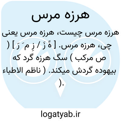 هرزه مرس. [ هََ زَ / زِ م َ رَ ] ( ص مرکب ) سگ هرزه گرد که بیهوده گردش میکند. ( ناظم الاطباء ). سگ ولگرد و قلاده بریده. در این ترکیب مرس ریسمانی است که به گردن اندازند: