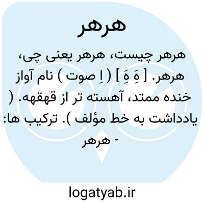 هرهر. [ هَِ هَِ ] ( اِ صوت ) نام آواز خنده ممتد، آهسته تر از قهقهه. ( یادداشت به خط مؤلف ).
