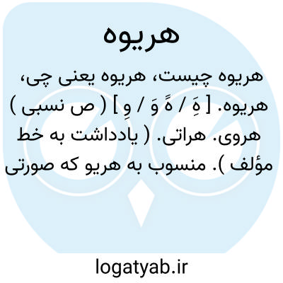 هریوه. [ هَِ / هََ وَ / وِ ] ( ص نسبی ) هروی. هراتی. ( یادداشت به خط مؤلف ). منسوب به هریو که صورتی از نام شهر هری یا هرات است: