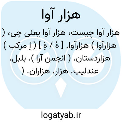 ( هزار آوا ) (اسم ) ۱- بلبل: (( تاهزار آوا ازسروبر آرد آواز گوید اورامزن ای باربد رودنواز... ) ) ((توبدوگوی که ای بلبل خوشگوی میاز که مرا دردل عشقی است بدین نال. زار ) ) (منوچهری )