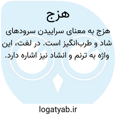 (هَ زَ ) [ ع. ] (اِ. ) ۱ - آواز، سرود. ۲ - بحری از عروض بر وزن چهار بار مفاعیلن.