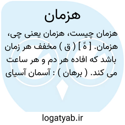 هزمان. [ هََ ] ( ق ) مخفف هر زمان باشد که افاده هر دم و هر ساعت می کند. ( برهان ):