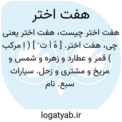 هفت اختر. [ هََ اَ ت َ ] ( اِ مرکب ) قمر و عطارد و زهره و شمس و مریخ و مشتری و زحل. سیارات سبع. نام فارسی آنها این است: ماه، تیر، ناهید، خورشید یا مهر، بهرام، برجیس وکیوان. ( یادداشت مؤلف ). به اعتقاد قدما جای این سبعه سیاره به ترتیب در هفت فلک یا هفت آسمان است: ماه در فلک اول، تیر در فلک دوم، ناهید در فلک سوم، مهردر فلک چهارم، بهرام در فلک پنجم، برجیس در فلک ششم، کیوان در فلک هفتم. ( از غیاث اللغات ):