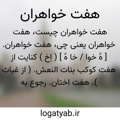 هفت خواهران. [ هََ خوا / خا هََ ] ( اِخ ) کنایت از هفت کوکب بنات النعش. ( از غیاث ). هفت اختان. رجوع به هفت اختان شود.