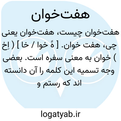 (اسم ) ۱- هفت منزل هفت مرحله. ۲- مجموع. پیشامدهایی که درهفت منزل برای پهلوانانی مانند رستم واسفندیار رخ داده. توضیح معمولااین کلمه را بصورت ((هفتخوان ) ) نویسند وبعضی وج. تسمی. صورت اخیر را آن دانستهاند که رستم واسفندیار بعد از هرکامیابی خوانی ازاغذی. لذیذ میگستردند ولی این وجه صحیح نمی نماید وبنظرمیرسد که صحیح در (( هفت خان ) ) باشدبمعنی هفت منزل ومرحله. درترجم. عربی شاهنامه از بنداری نیز ((هفتخان ) ) آمده.