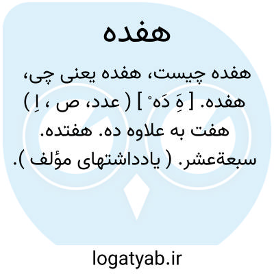 هفده. [ هَِ دَه ْ ] ( عدد، ص، اِ ) هفت به علاوه ده. هفتده. سبعةعشر. ( یادداشتهای مؤلف ).