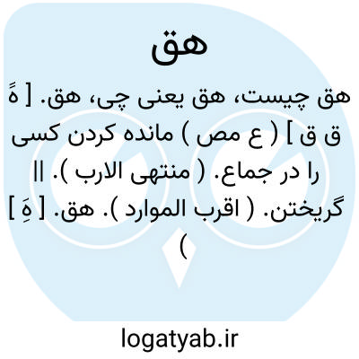 هق. [ هََ ق ق ] ( ع مص ) مانده کردن کسی را در جماع. ( منتهی الارب ). || گریختن. ( اقرب الموارد ).
