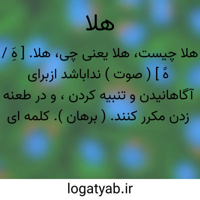 (صفت ) برای معانی ذیل بکاررود: الف - آگاهانیدن وتنبیهبکاررود: (( گفت: هلاجامهابمن ده تالحظ. بیاسایی. ) ) ب - برای تحسین: ((دین چودلم پاک دید گفت: هلا. هین بدل پاک برنگارمرا. ) ) ( ناصرخسرو )