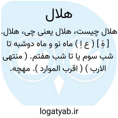 هلال. [ هَِ ] ( ع اِ ) ماه نو و ماه دوشبه تا شب سوم یا تا شب هفتم. ( منتهی الارب ) ( اقرب الموارد ). مهچه. ماهچه. ماه نو. ( یادداشتهای مؤلف ):