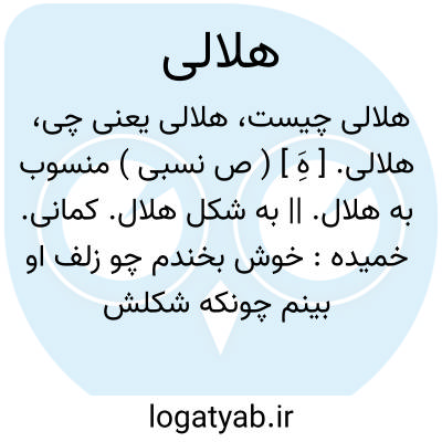 هلالی. [ هَِ ] ( اِخ ) دهی است از بخش حومه شهرستان نیشابور که 164 تن سکنه دارد. آب آن از قنات و محصول عمده اش غله است. ( از فرهنگ جغرافیائی ایران ج 9 ).