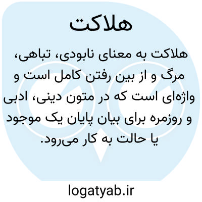 هلاکت به معنای نابودی، تباهی، مرگ و از بین رفتن کامل است و واژه‌ای است که در متون دینی، ادبی و روزمره برای بیان پایان یک موجود یا حالت به کار می‌رود. این واژه می‌تواند به مرگ فیزیکی انسان یا جانوران اشاره داشته باشد و همچنین برای توصیف فروپاشی یا از بین رفتن اشیاء، کشورها یا نظام‌ها نیز به کار می‌رود. در متون دینی، هلاکت غالباً به نابودی انسان‌ها یا امت‌ها به دلیل گناه و دوری از مسیر حق و عدالت اشاره دارد و بار معنایی هشداردهنده و عبرت‌آموز دارد. این واژه در ادبیات فارسی برای بیان شدت شکست، نابودی کامل و فروپاشی شرایط یا شخصیت‌ها نیز به کار می‌رود و بار عاطفی و احساسی شدیدی دارد. هلاکت با مفاهیمی مانند تباهی، فساد، فنا و سقوط همراه است و به نوعی نقطه مقابل بقا، زندگی و استمرار تلقی می‌شود.