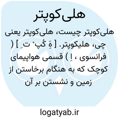 هلیکوپتر. [ هَِ کُپ ْ ت ِ ] ( فرانسوی، اِ ) قسمی هواپیمای کوچک که به هنگام برخاستن از زمین و نشستن بر آن میتواند به حالت عمودی حرکت کند. ( فرهنگ فارسی معین ).