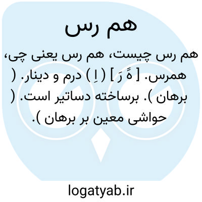 همرس. [ هََ رَ ] ( اِ ) درم و دینار. ( برهان ). برساخته دساتیر است. ( حواشی معین بر برهان ).