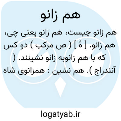 هم زانو. [ هََ ] ( ص مرکب ) دو کس که با هم زانوبه زانو نشینند. ( آنندراج ). هم نشین: