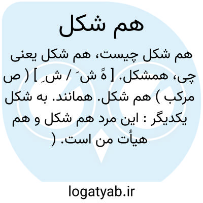 همشکل. [ هََ ش َ / ش ِ ] ( ص مرکب ) هم شکل. همانند. به شکل یکدیگر: این مرد هم شکل و هم هیأت من است. ( سندبادنامه ).