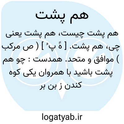 کز برای شکم بود هم پشت.سنائی.پس آن زنان همه هم پشت شدند تا مگر کید را رهایی دهند. ( اسکندرنامه ). سوگند خورند که هم پشت باشند تا خونها بازخواهند. ( اسکندرنامه ). ظالمان مکار چون هم پشت شوند...ظفر یابند. ( کلیله و دمنه ). سگ سگ را گزد ولیکن چون گرگ را بینند هم پشت شوند. ( مرزبان نامه ).