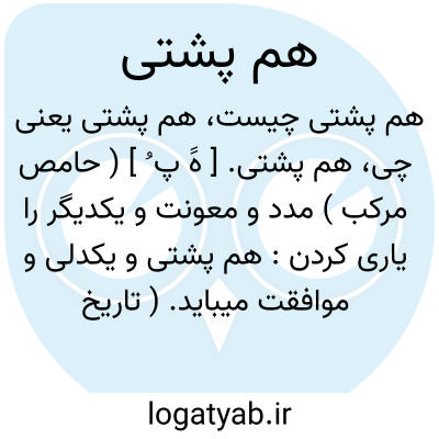 هم پشتی. [ هََ پ ُ ] ( حامص مرکب ) مدد و معونت و یکدیگر را یاری کردن: هم پشتی و یکدلی و موافقت میباید. ( تاریخ بیهقی ). از هم پشتی دشمنان اندیش نه از بسیاری ایشان. ( مرزبان نامه ).