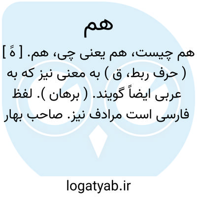 (هَ ) [ په. ] ۱ - (ق. ) نیز، همچنین. ۲ - (پش. ) در ترکیبات پیشوند اشتراک است: هم اتاق، همراه، همدل.