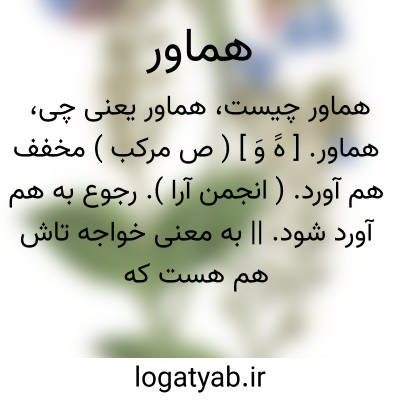 هماور. [ هََ وَ ] ( ص مرکب ) مخفف هم آورد. ( انجمن آرا ). رجوع به هم آورد شود. || به معنی خواجه تاش هم هست که هم صاحب و هم خداوند باشد یعنی دو کس یا بیشتر که یک صاحب و یک خداوند دارند، چه آور به معنی خداوند و صاحب هم آمده است. ( برهان ). هماور. [ هََ وَ ] ( اِخ ) مخفف هاماوران است که ولایت عربستان و یمن باشد. ( انجمن آرا ). سراسر ولایت شام و یمن را گویند. ( برهان ): چو شاه هماور به شهراندرون بیامد بننشست با رهنمون.فردوسی.رجوع به هاماوران شود.
